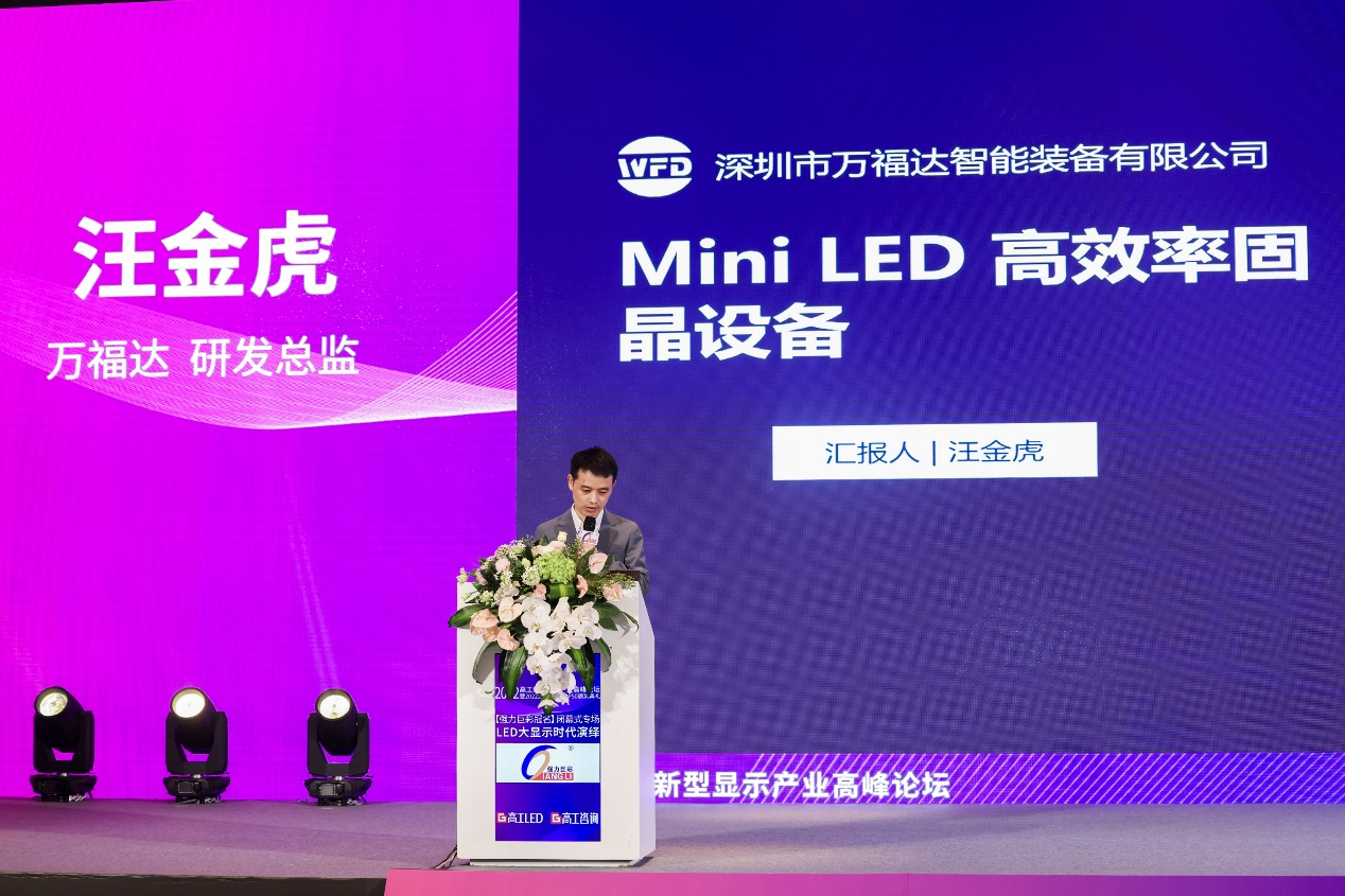 7月8日下午,萬福達研發(fā)總監(jiān)汪金虎發(fā)表了主題為《Mini LED 高效率固晶設(shè)備》的精彩演講。汪總表示“根據(jù)權(quán)威媒體的預(yù)測,在未來5年內(nèi), Mini LED的產(chǎn)品增長非常迅速,趨勢也非常明確,對比傳統(tǒng)液晶顯示,Mini LED背光能在更小的混光距離內(nèi)實現(xiàn)更好的亮度均勻性,且采用局部調(diào)光設(shè)計,其擁有更精細的分區(qū),并大幅提升液晶顯示的對比度。對比Micro LED,Mini LED背光更具價格優(yōu)勢。對比OLED顯示,Mini LED背光更容易實現(xiàn)量產(chǎn)。實現(xiàn)量產(chǎn)計劃,Mini LED 高效率固晶設(shè)備尤為重要。”針對Mini LED增量的市場,萬福達推出了背光、直顯、全自動生產(chǎn)線三大系列固晶產(chǎn)品。為了提高Mini LED封裝行業(yè)產(chǎn)能,我們還帶來了當(dāng)前行業(yè)最高實測產(chǎn)能200K+的RGB固晶機WFD8916A,為整個產(chǎn)業(yè)鏈的發(fā)展貢獻出強大的力量!