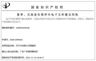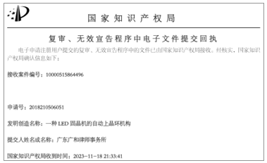 下面兩個(gè)截屏是專利無(wú)效文件的提交回執(zhí)。